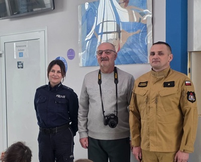 Policjanci i strażacy wspólnie o bezpieczeństwie dzieci podczas ferii