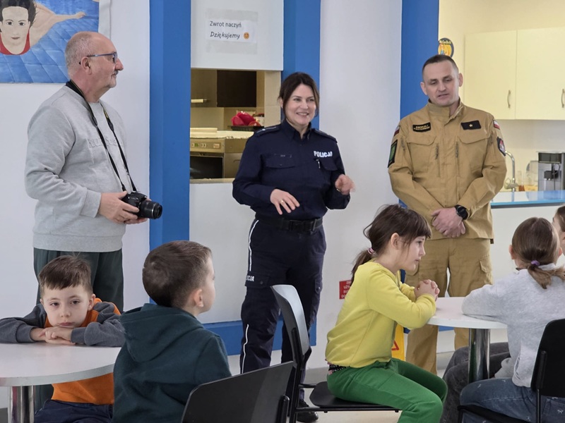 Policjanci i strażacy wspólnie o bezpieczeństwie dzieci podczas ferii